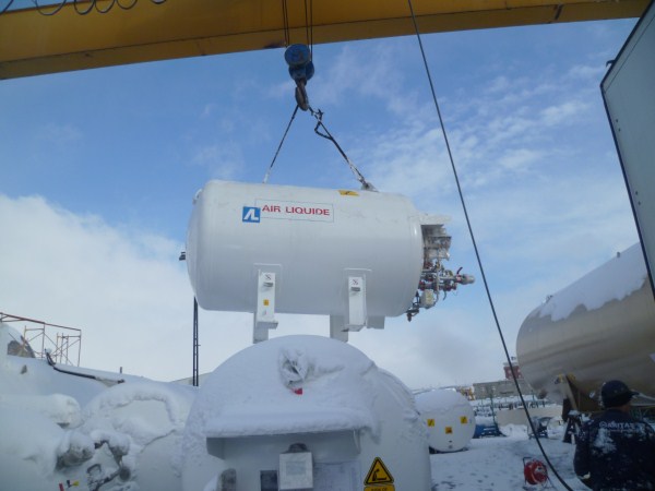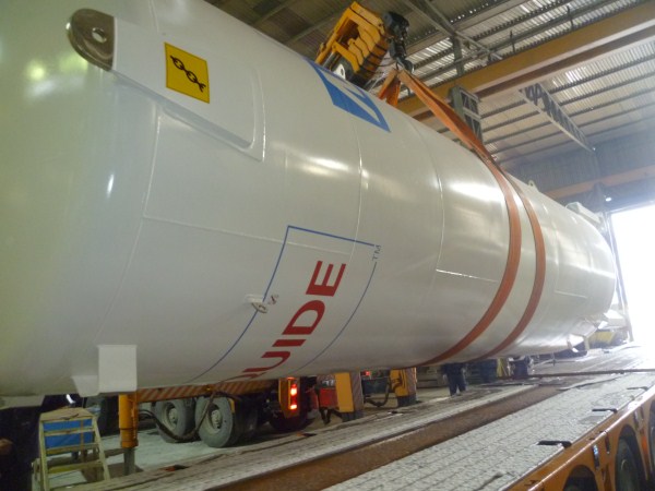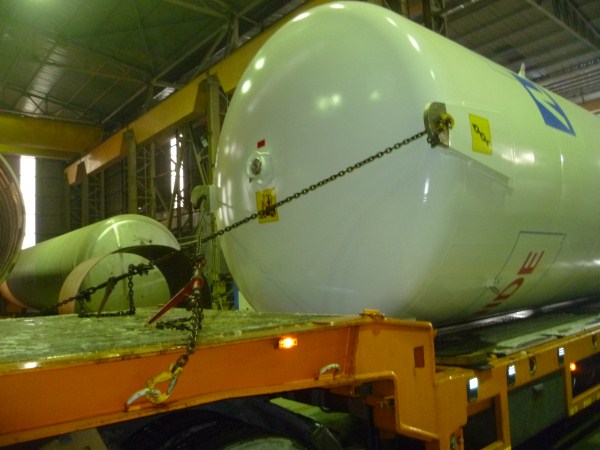 handled the moves for 2 new vertical eurotanks of 16,300 kgs and 11,560 kgs from the factory in Tuzla to Saint Mathurin - FRANCE.