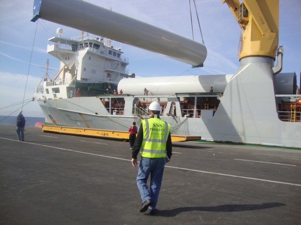 SNS Project Team not only delivered the first components, that were exported from Spain, but also supervised and received all on site for the construction for this tower that will commence at the end of March 2014. To give an insight, the blades were 40 meters in length, tower sections received equaled about 70 meters combined and there are the additional components for construction such as the Nacelle that was 80 tons.