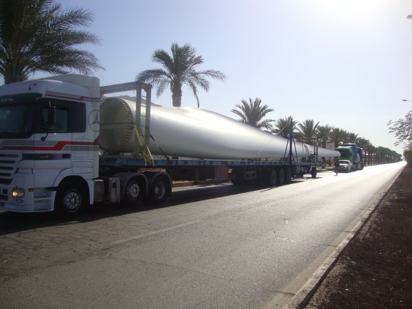 SNS International Transport is proud to announce its’ involvement in this by transport the first components for the first wind farm tower to the Al Shobak district in Jordan. Located approximately 160 kilometers from the port of Aqaba and at an elevation of 1250 meters above sea level, this is a first time for Jordan.