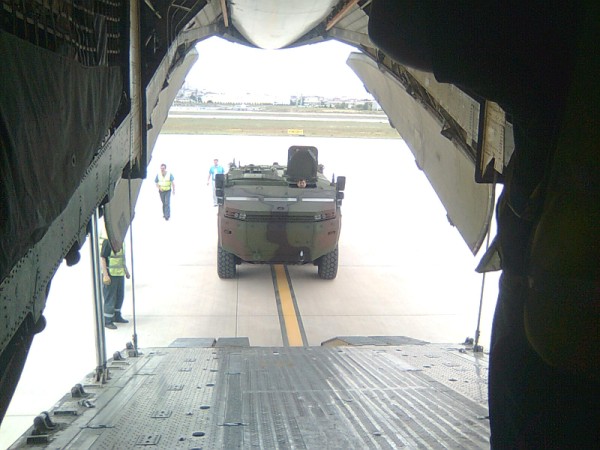 SNS loaded 20 ton armoured personnel carrier at Sabiha Gokcen Airport. Carrier was made by Turkey's esteemed military vehicle producer OTOKAR and it will show up in Bahrain.